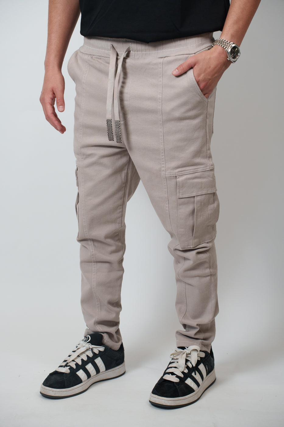 דגמ"ח ג'ינס עם מותן אלסטי ושרוך ייחודי, שני כיסים קדמיים, שני כיסים אחוריים ושני כיסי דש ברגליים.