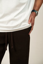 מכנסיים אוברסייז מבד קורדרוי ייחודי עם גומי במותן, שני כיסים מקדימה ושני כיסים מאחור.