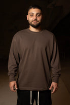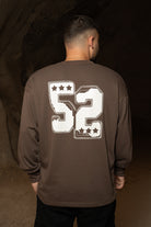 חולצה מבד פרנץ׳ טרי בגזרת אוברסייז עם הדפס מאחור ושרוולים ארוכים.