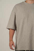 טי שירט בטקסטורת פשתן בגזרת אוברסייז עם צווארון עגול ושרוולים קצרים.