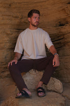 טי שירט מבד סריג דק, גזרת אוברסייז עם צווארון עגול ושרוולים קצרים.