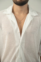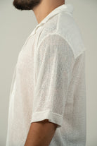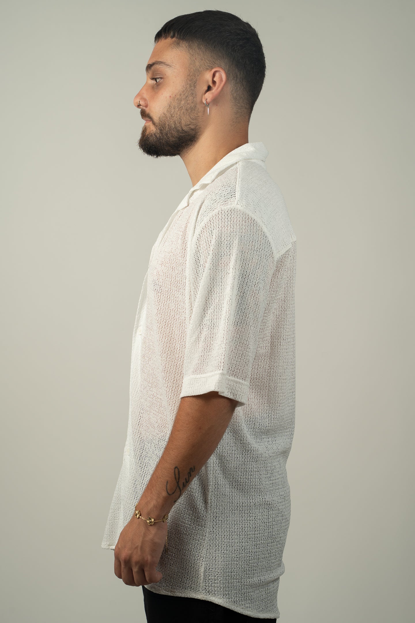 חולצה מכופתרת מבד קרושה, סגירת כפתורים ושרוולים קצרים.