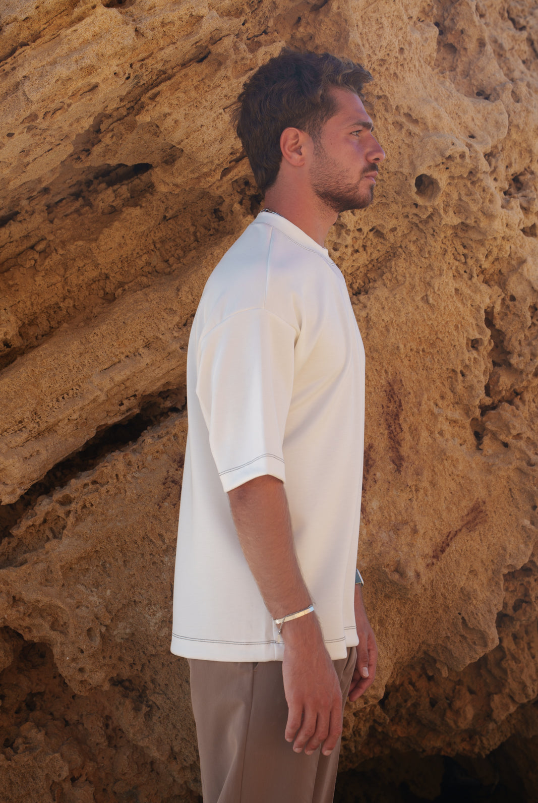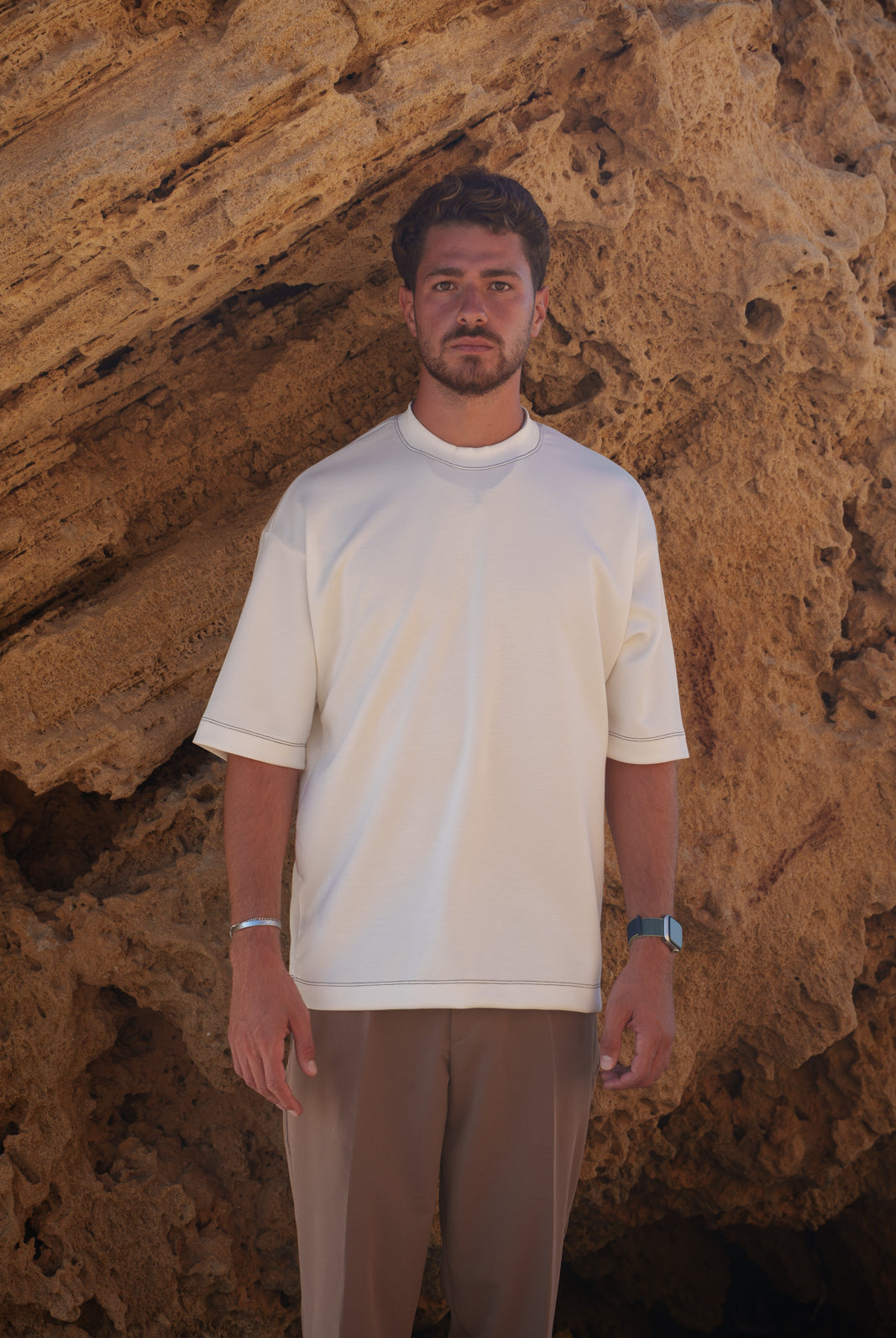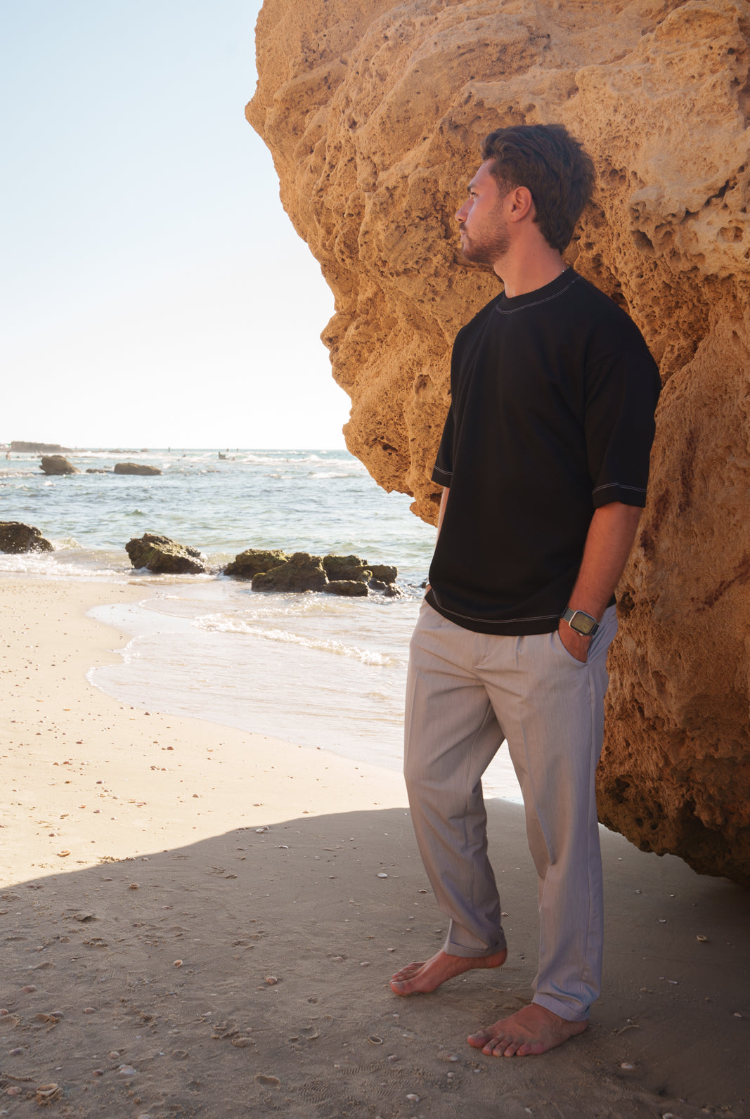 מכנסי ברמודה בסגנון נגרים עם טקסטורה, גומי במותן, שני כיסים מקדימה, ושני כיסים מאחור.