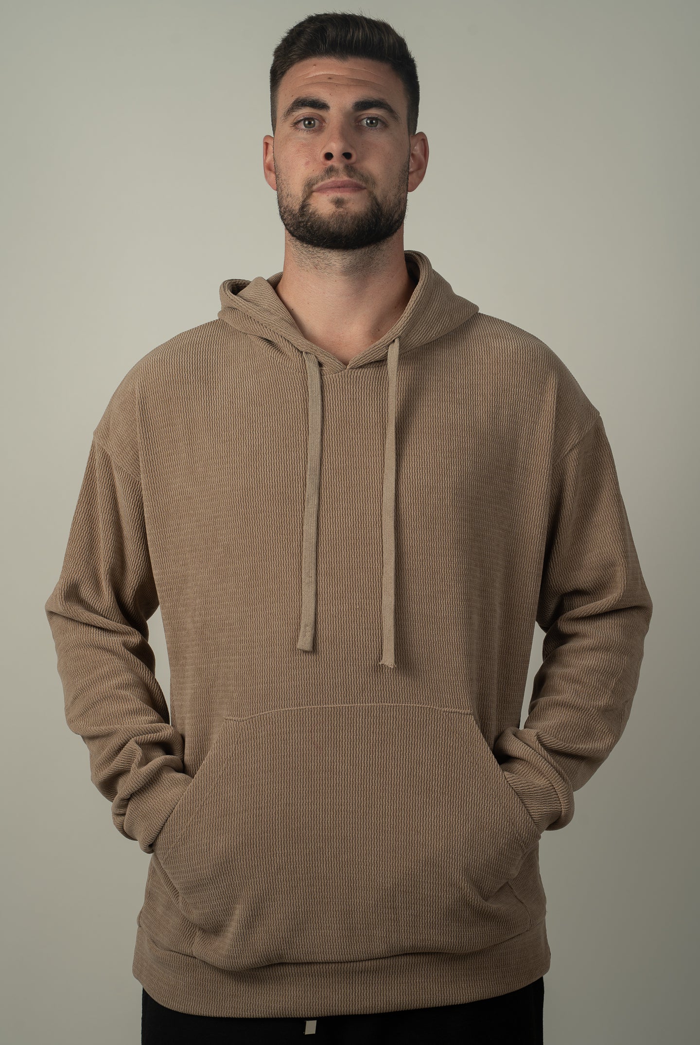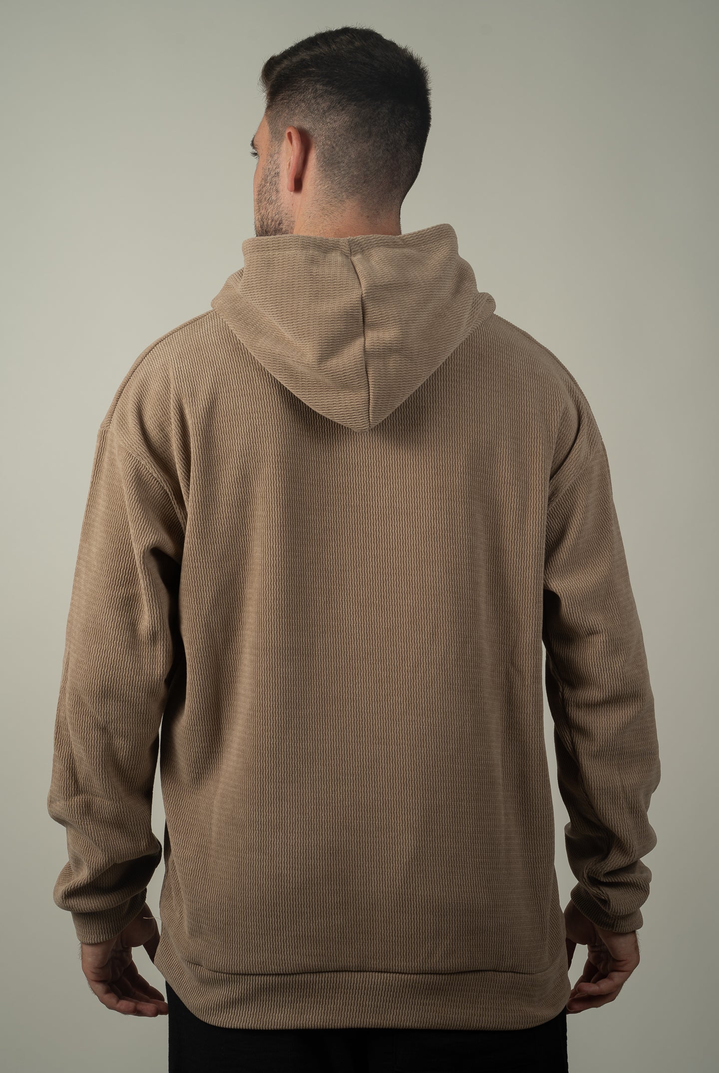 מכנסי ברמודה בסגנון נגרים עם טקסטורה, גומי במותן, שני כיסים מקדימה, ושני כיסים מאחור.
