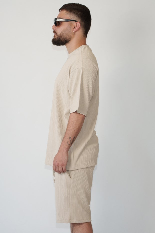 סט של חולצה ומכנסיים קצרים בגזרת אוברסייז עם טקסטורה.