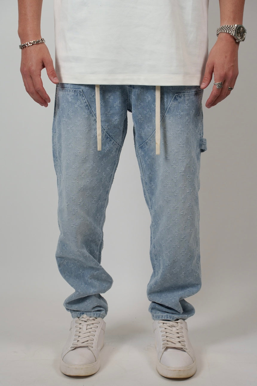 ג'ינס בסגנון נגרים עם טקסטורה, גומי במותן, שני כיסים מקדימה, ושני כיסים מאחור.