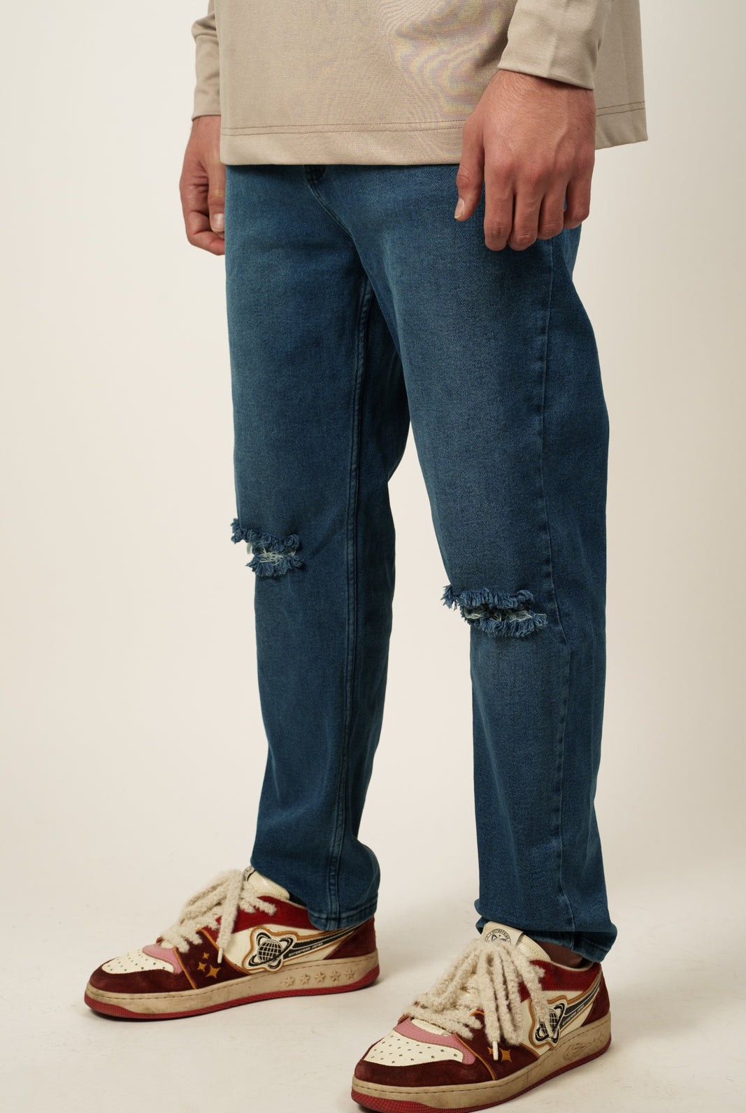 חולצה מבד פרנץ׳ טרי בגזרת אוברסייז עם הדפס מאחור ושרוולים ארוכים.