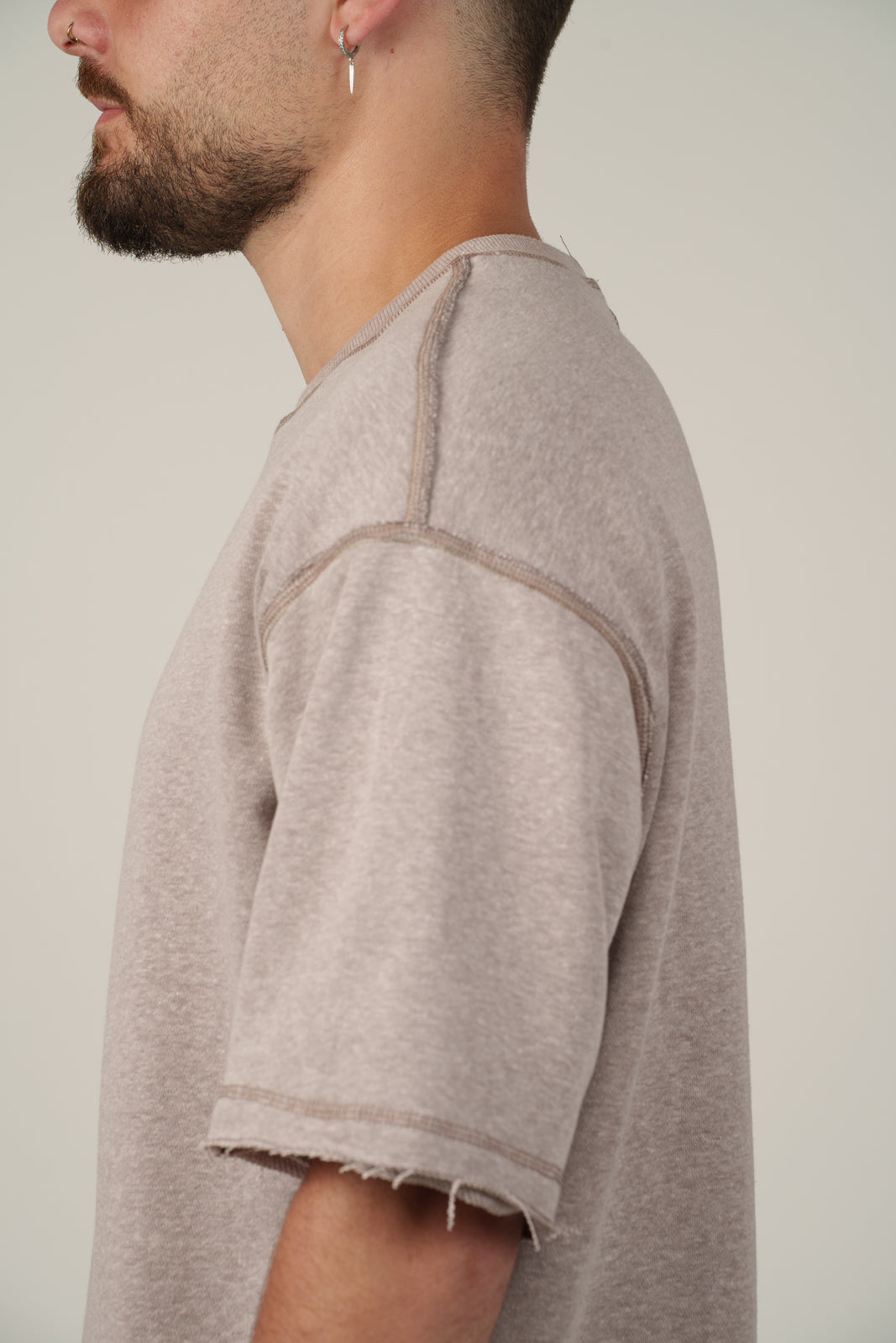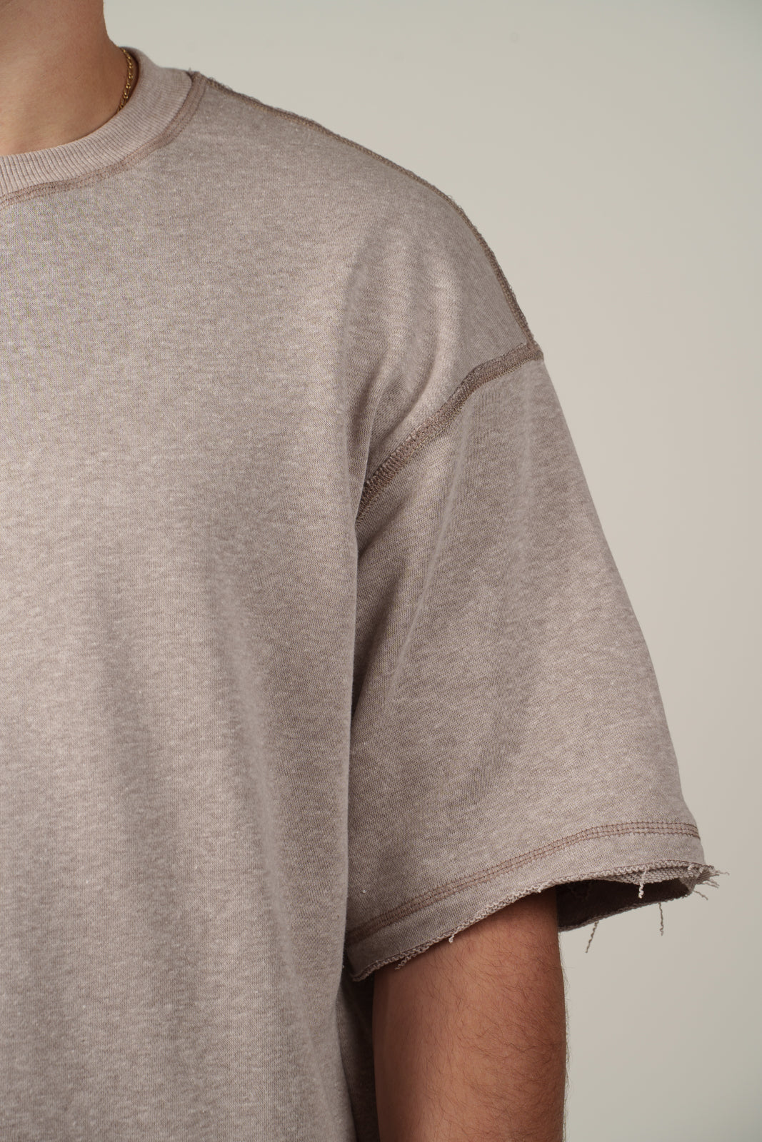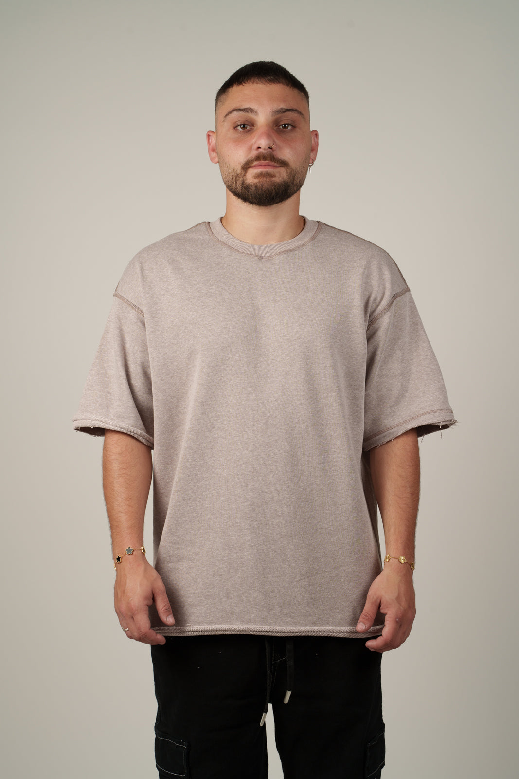 טי שירט מבד פרנץ׳ טרי בגזרת אוברסייז עם צווארון עגול ושרוולים קצרים.