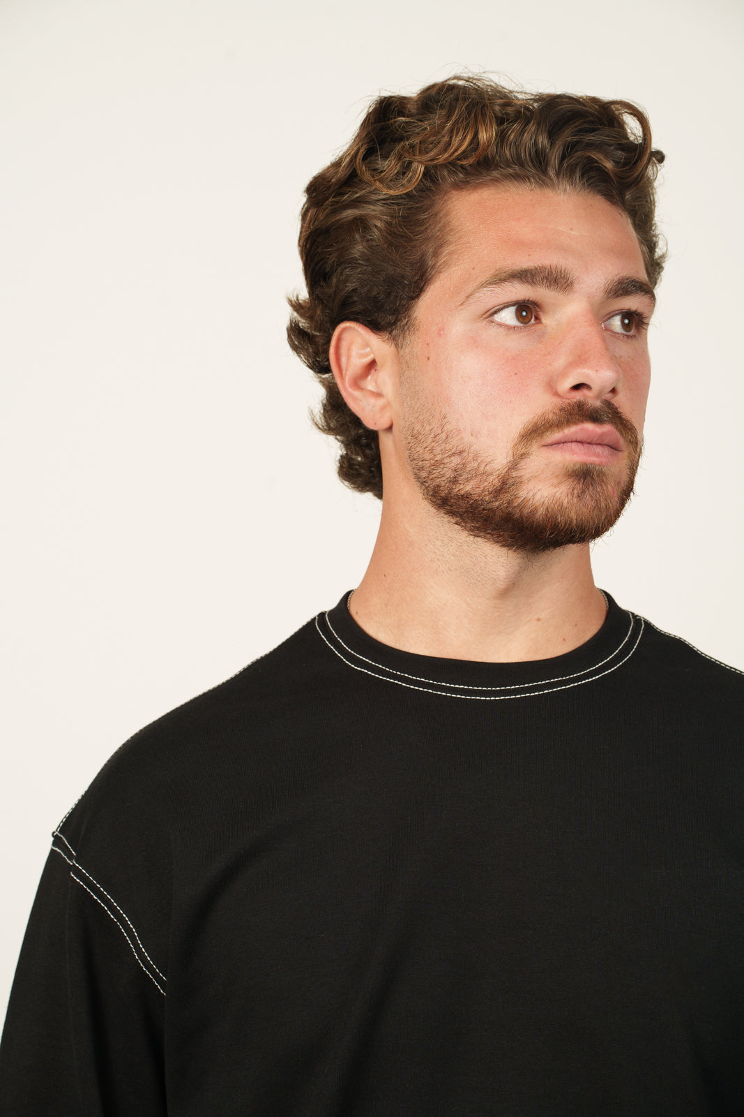 הטי־שירט בגזרת אוברסייז עם צווארון עגול ותיפורים מדויקים, מתאימה לחורף הישראלי ומעניקה נוחות בלי פשרות בזכות הגזרה המדויקת ומגע המשי העדין.